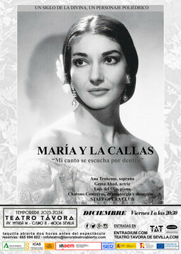 En el centenario del nacimiento de la Divina, y desde la más profunda admiración por el icono de la ópera del siglo XX, por su voz prodigiosa, su temperamento dramático y su magistral forma de abordar los personajes en escena, la actriz Gema Abad, la soprano Ana Troncoso, con dramaturgia y dirección de Chatono Contreras, nos dibujan el retrato íntimo de María; no sólo la extraordinaria diva, sino especialmente, su lado más humano: cómo la veían los demás, cómo quería que la vieran, y sobretodo, cómo se veía a sí misma.